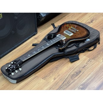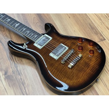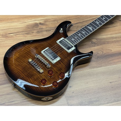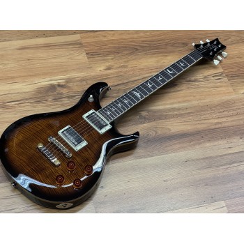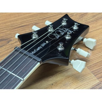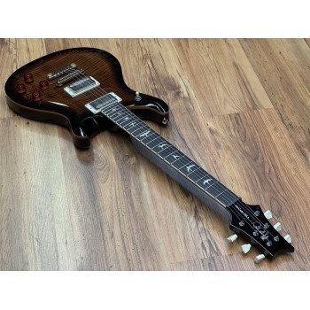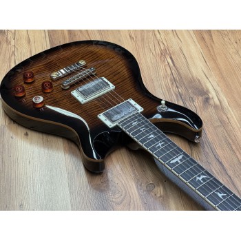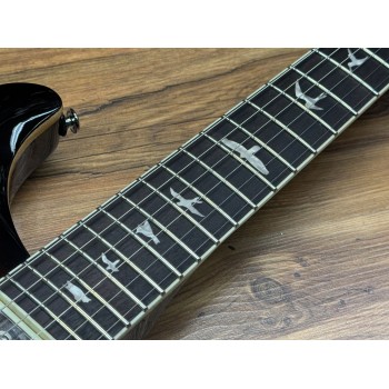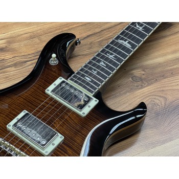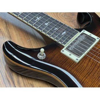 A 3-way pickup selector switch is located on the front of the body. The fretboard is made of rosewood and includes binding to protect the guitar's structure from heavy use. The PRSTwo-Piece bridge is custom-designed by PRS for exclusive use and tonal customization. Nickel-plated hardware provides a natural shine to the components, contributing to a striking presence for live performances or recordings. White bird inlays complement the old-school style, along with the dark brown finish. The body also features binding to reduce wear and tear from time and frequent practice.