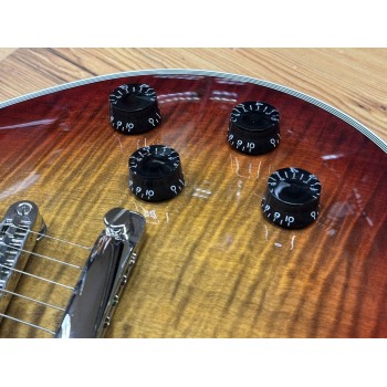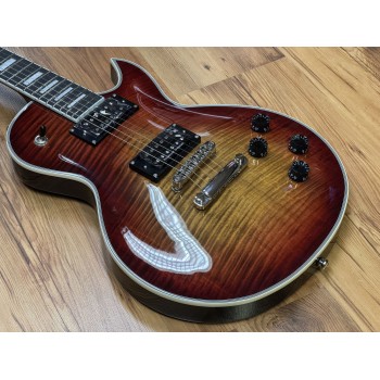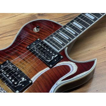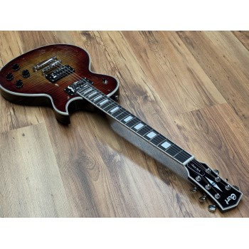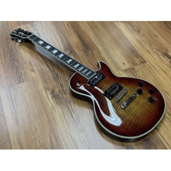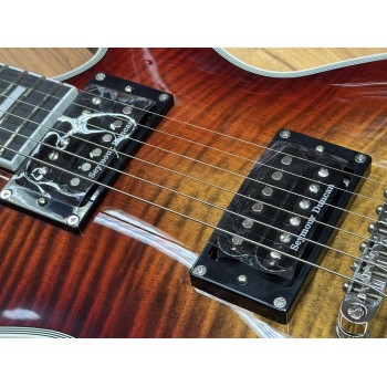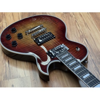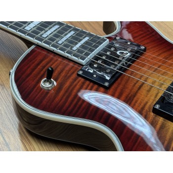 A striking Flaming Burst over flamed maple commands attention, framed by multi-ply binding and nickel hardware for a refined, upscale feel.