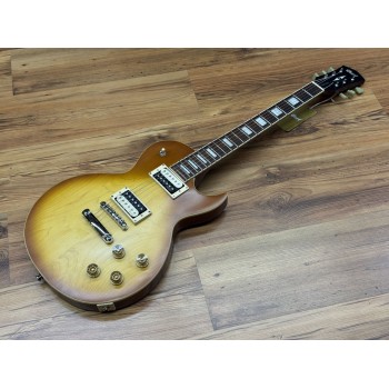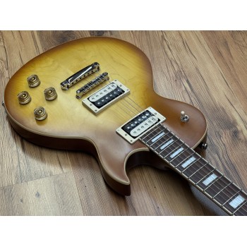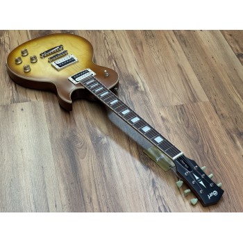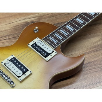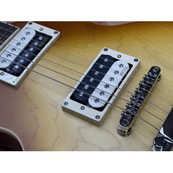 The thick carved 15mm (19/32″) Maple top on Mahogany body is a classic wood combination that simply cannot be beat: thick, cutting, warm, rich, full and sweet.